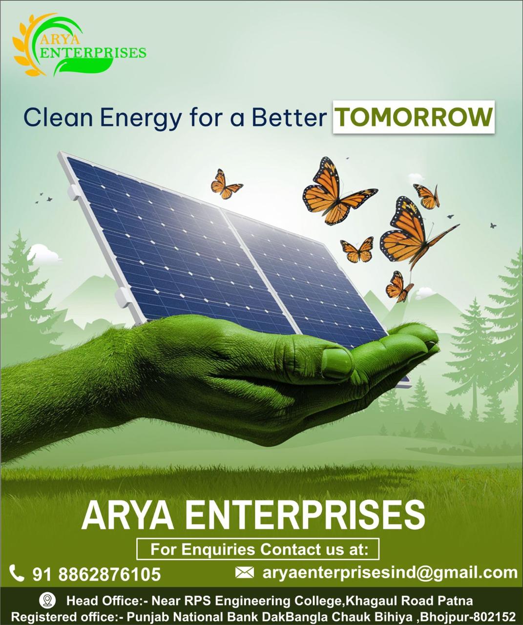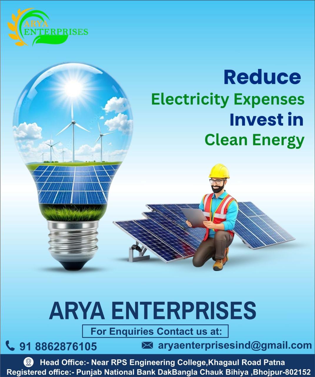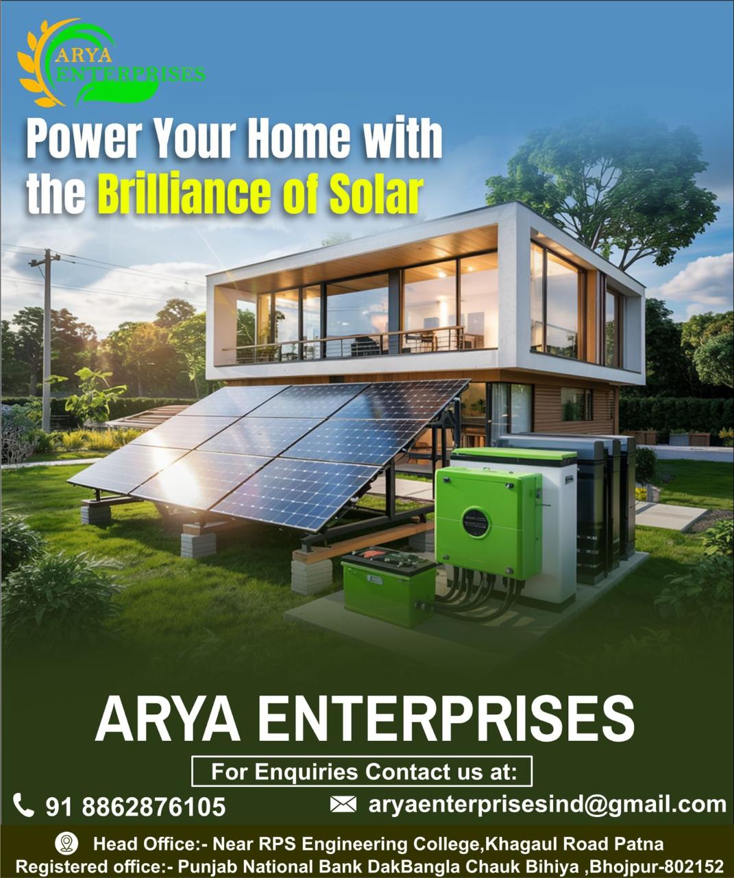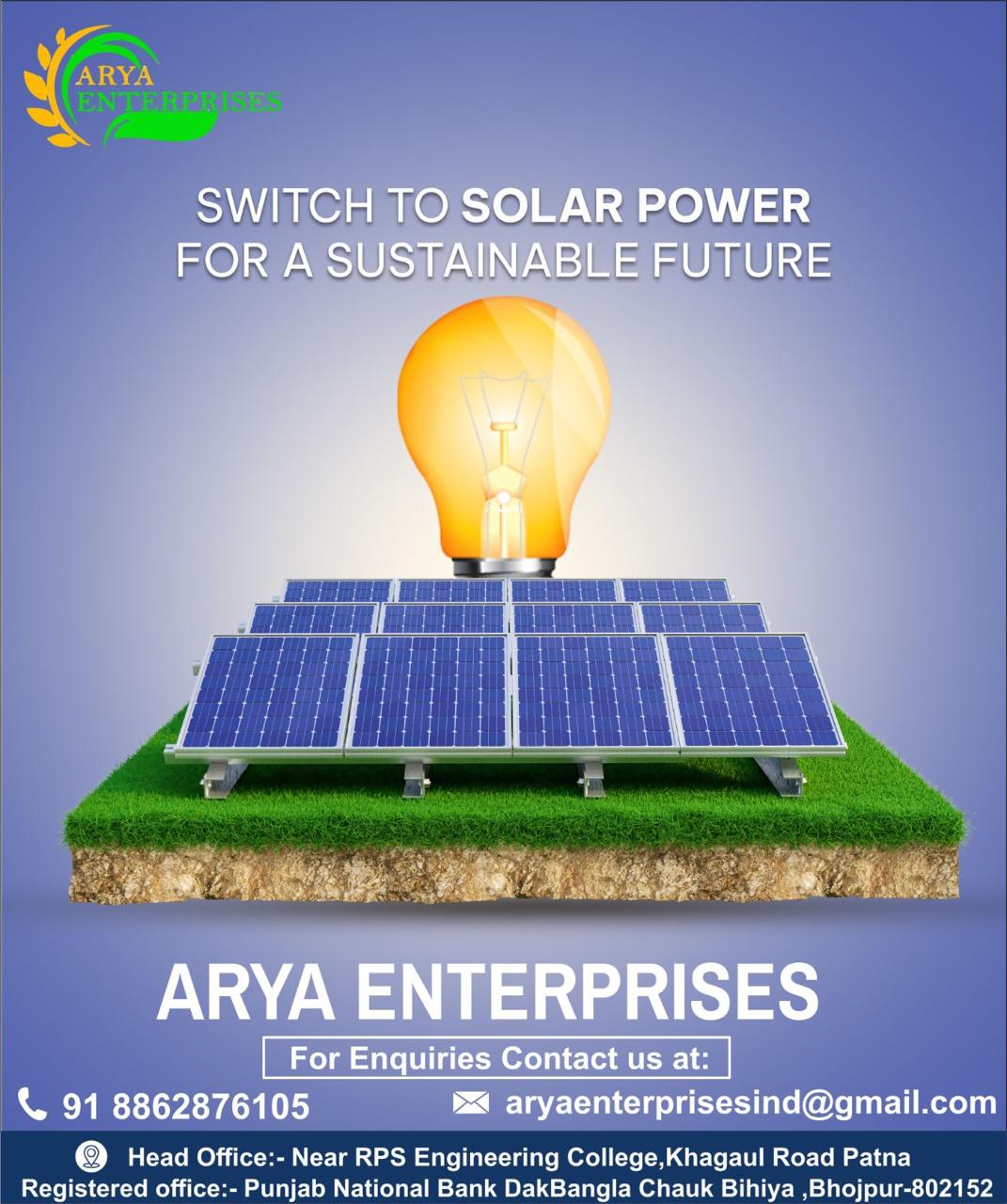 Contact ARYA ENTERPRISES today for a free consultation and take the first step towards energy independence and sustainability.