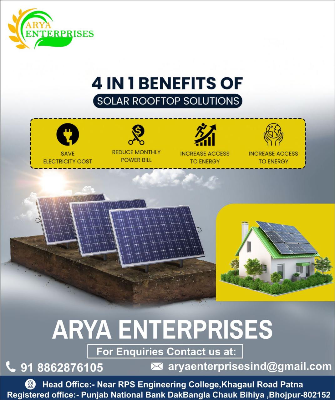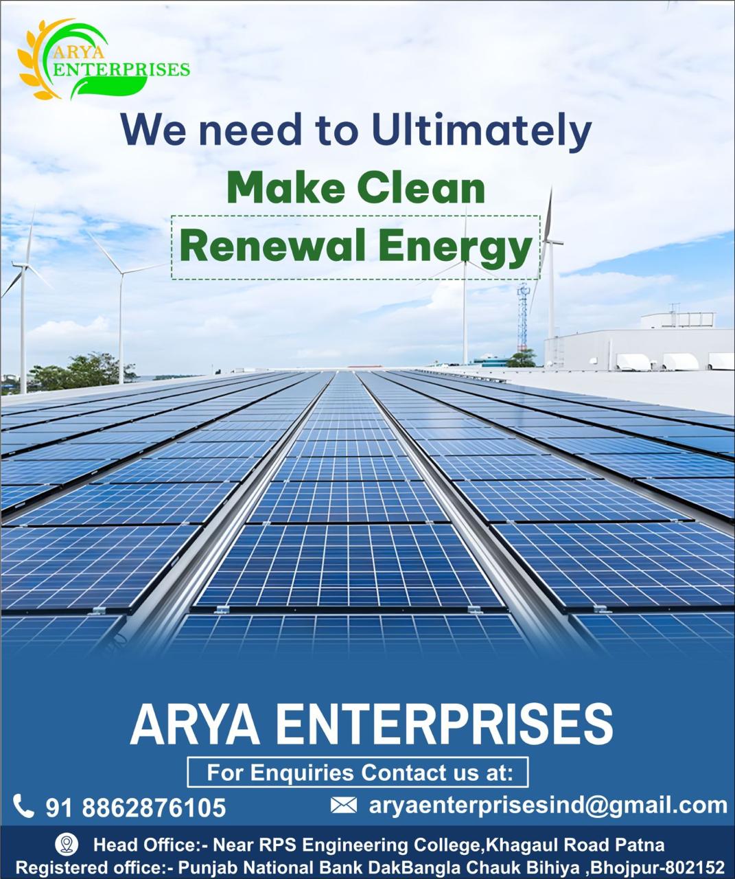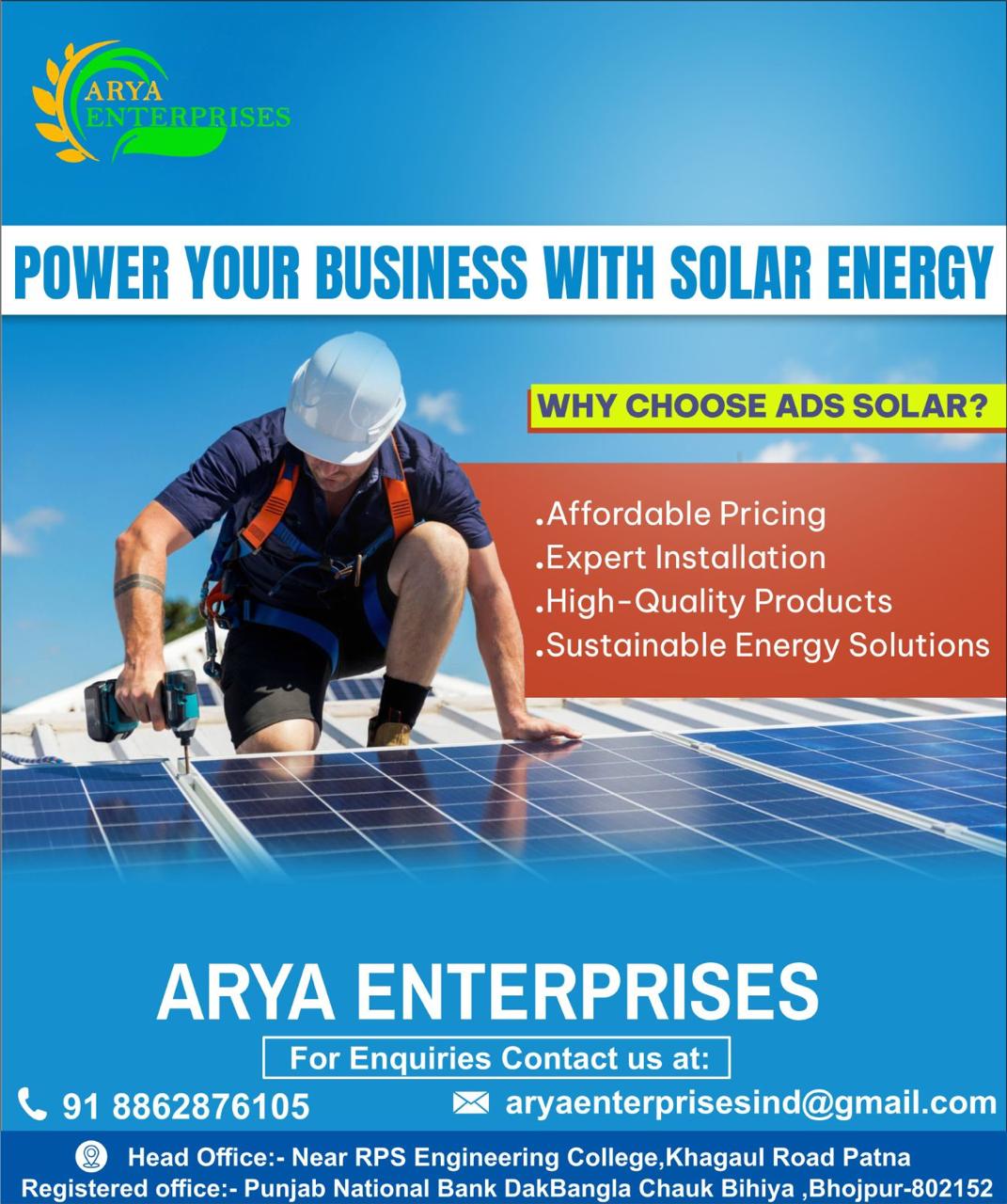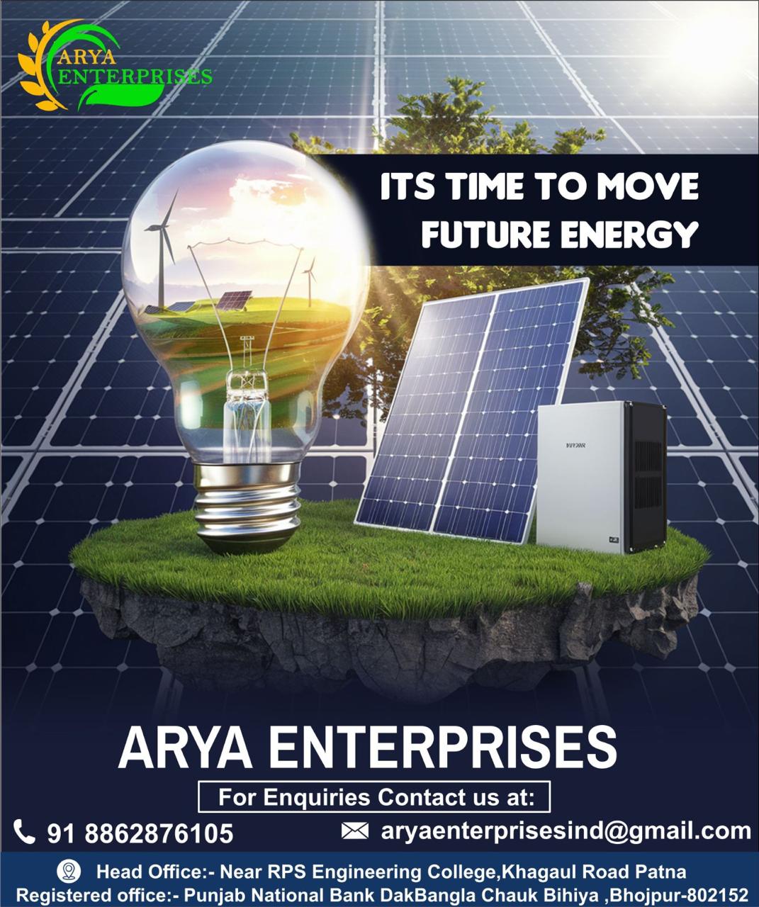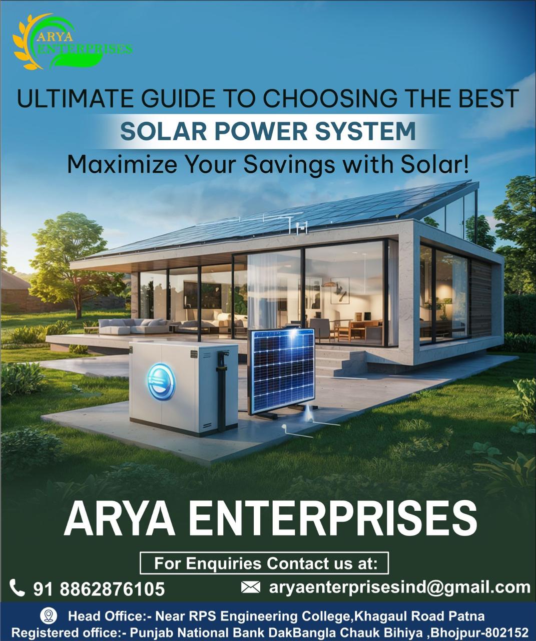 Contact ARYA ENTERPRISES today for a free consultation and take the first step towards energy independence and sustainability.